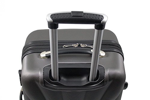 Beschreibung Die Koffer haben folgende Größen: Koffer M: ca. 56,5 x 39,5 x 24,5cm; ca. 47 Liter Volumen Koffer XL: ca. 76,5 x 52,5 x 31,5cm; ca. 115 Liter Volumen Sie sehen hier einen formstabilen Hartschalenkoffer. Durch das 360°-Rollen-System – sind sie sehr laufruhig und komfortabel. Dank einer Dehnungsfuge (Doppelreißverschluss) erhalten die Koffer 25% mehr Volumen. Das integrierte Sicherheits-Zahlenschloss bietet Ihnen Schutz vor unbefugtem Zugriff. Die Trolleys verfügen über Doppelgriffe, dadurch sind sie auch seitlich transportierbar. Sie haben einen höhenverstellbaren, ergonomisch geformten Teleskopgriff. Lieferumfang Die 2 Koffer sind in Folie verpackt und werden inneinander verschachtelt in einem Karton geliefert. 1x Koffer M (Dunkelgrau) 1x Koffer XL (Dunkelgrau) Technische Daten Koffer M Aussenmass: (mit Rollen und Griff) ca. 56,5 x 39,5 x 24,5cm Innenmass: ca. 46 x 35,5 x 22,5cm Höhe inkl. Teleskopgriff: ca. 100cm Gewicht: ca. 3,15kg Volumen: bis zu 47L Koffer XL Aussenmass: (mit Rollen und Griff) ca. 76,5 x 52,5 x 31,5cm Innenmass: ca. 66,5 x 47,5 x 29,5cm Höhe inkl. Teleskopgriff: ca. 102cm Gewicht: ca. 4,55kg Volumen: bis zu 115L