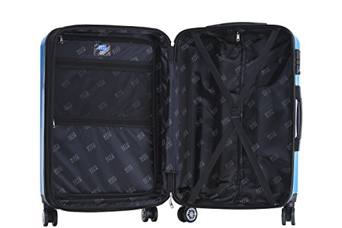 Artikelbeschreibung: sicher: TSA-Zahlenschloss mit verstellbarem Code erweiterbar: Mit Dehnfalte für ca. 15% mehr Packvolumen langlebig: Teleskopstange aus verstärktem Aluminium bruchsicher: Polycabonat-ABS-Hartschalen sind extrem robust, absolut stabil und stoßunempfindlich wendig: 4 gummierte Zwillings-Leichtlaufrollen, 360° drehbar standfest: 4 Kunststoff-Füße an der Längsseite praktisch: Tragegriffe an der Ober- und Längsseite übersichtlich: Flexibler Zwischenboden mit drei separaten Fächern unterteilt den Kofferinnenraum ordentlich: Kreuzgurt sichert den Inhalt nachhaltig: Tragegriffe, Teleskopgriff, Rollen und Standfüße sind geschraubt und können jederzeit nachbestellen Maß- und Gewichtsangaben Handgepäck M (55 cm)–kein seitlicher Griff Maße mit Rollen und Griffen: 55 x 36 x 21 cm Maße ohne Rollen und Griffen: 50 x 33 x 19 cm Gewicht: 3,2 kg Max. Packvolumen (inkl. Volumenerweiterung): 42 Liter Min. Packvolumen: 34 Liter Versandvolumen: 49 Liter Mittelgroßer Koffer L (65 cm) Maße mit Rollen und Griffen: 65 x 41 x 26 cm Maße ohne Rollen und Griffen: 60 x 39 x 26 cm Gewicht: 4,2 kg Max. Packvolumen (inkl. Volumenerweiterung): 74 Liter Min. Packvolumen: 61 Liter Versandvolumen: 82 Liter Großer Koffer XL (75 cm) Maße mit Rollen und Griffen: 75 x 50 x 30 cm Maße ohne Rollen und Griffen: 70 x 48 x 30 cm Gewicht: 5,2 kg Max. Packvolumen (inkl. Rollen und Griffe): 119 Liter Min. Packvolumen: 101 Liter Versandvolumen:128 Liter
