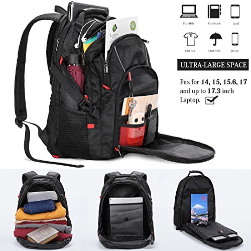 Garantie: Wir versprechen Ihnen 90 tage garantie auf die qualität, sollte es irgendwelche probleme mit dem rucksack geben,so kontaktieren sie uns bitte. Wir geben Ihnen eine 100% erstattung innerhalb von 90 tagen nach dem Kauf. Produkteigenschaften: 1.Fashion, multifunktional, leichter und langlebiger laptoprucksack uni. 2.Rucksack daypack mit USB schnittstelle ist es einfach, das telefon oder elektronische geräte aufzuladen. 3.Sonnenbrillen Inhaber auf dem linken schultergurt ist entworfen, um Ihre sonnenbrille zu sichern. 4.Elastische netz außentaschen auf beiden seiten, ist design für die haltung von wasserflasche und regenschirm. 5.Auf der rückseite des rucksacks befindet sich ein durchlass für ihre koffer zugstange. So können sie den rucksack bequem auf ihren koffer stellen und an der zugstange fixieren. Große kapazität-45L: 1. Fronttasche: schlüssel, sonnenbrille und andere kleine gegenstände. 2. Hauptfach: bücher, kindle, brieftasche, kleider, datei, powerbank, kamera, ladegeräte, notizbuch, etc. 3. Laptop fach: fit für 14/ 15.6/ 16/ 17 zoll/ 17.3 Zoll laptop und notebook(35.6/39.6/40.6/43.2/43.9cm) 4. Innentasche: kreditkarte, brieftasche,handy 5. Seitentaschen: wasserflasche, regenschirm Specification: -Typ: Laptop rucksack/business bag/schule rucksack/notebook rucksack -Farbe: Schwarz -Gewicht: 1.1kg -Größe: 36 x 26 x 48 cm -Abgeschlossener Weg: Reißverschluss -Material: Nylon, wasserdicht polyestergewebe -Anwendbare Personen: Herren / Damen / Frauen/ Männer Paket beinhaltet: 1* Laptop rucksack 17,3 zoll(schwarz) 1* USB Cable Hinweis: 1.Überprüfen Sie bitte, ob die Größe zu Ihrem laptop passt. 2.Unser business laptop rucksack enthält keine powerbank.