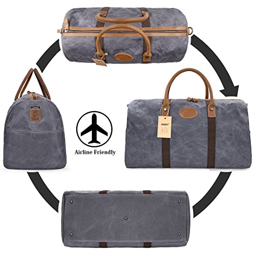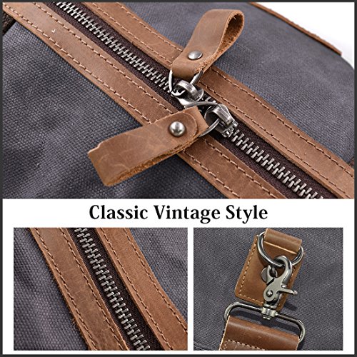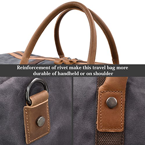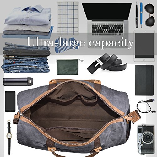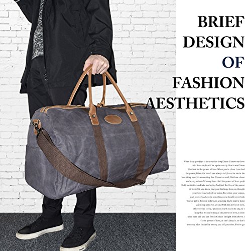 Wasserdichte Reisetaschen aus wasserdichtem Segeltuch mit hoher Dichte ★ Diese Reisetasche besteht aus wasserfestem, gewachstem Canvas mit hoher Dichte und hochwertigem Crazy-Horse-Leder aus Rindsleder mit super weichem, lockerem Innenfutter. Die tolle Kombination macht sie zur perfekten Wahl für Outdoor, Reisen, Urlaub, Strand oder Schule. ★ Die Reißverschlüsse, der Griff und der Riemen sind super stark und der Haupt-Reißverschluss ist einfach für das Einlegen und Entfernen von Kleidung oder Reiseutensilien. ★ Der Gurt ist weich und reizt nicht die Haut beim Anschnallen. ★ Diese Reisetasche hat mehrere Innentaschen, die Ihre Sachen wie Smartphone, Headset, Schlüssel, Tickets, MP3.etc organisiert. ★ Diese Reisetasche hat auch einen guten Platz für wichtige Dokumente wie Führerschein, Reisepass oder Fahrkarten, die leicht zu bekommen sind. Features: – Farbe: Braun / Grau – Stil: / Reisetasche / Reisetasche / Gepäck – Material: Wasserdichte, wasserfeste Leinwand und Leder – Abmessungen: 58 cm (L) * 28,5 cm (W) * 30 cm (H). Schultergurt: 71 cm – 132 cm. Achtung: Aufgrund der unterschiedlichen Messmethoden kann die Beutelgröße 1-2 cm Fehler haben. Die in den Fotos angezeigte Objektfarbe kann sich auf Ihrem Computermonitor geringfügig unterscheiden. Es kann ein wenig riechen, da es neu und unbenutzt ist. Bitte stellen Sie es für einige Stunden in einen luftigen Raum, dann wird der Geruch verschwinden.
