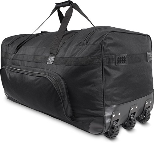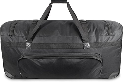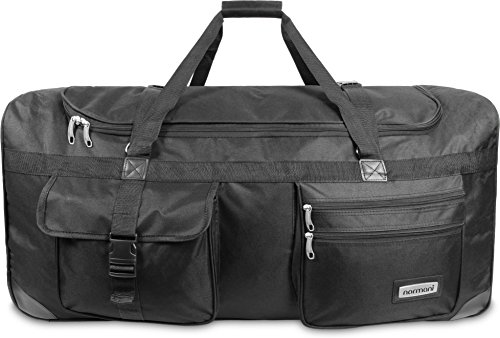 Die normani® XXL Reisetasche verfügt dank geräumigem Hauptfach und diversen Nebenfächern über ausreichend Stauraum. Der versenkbare Trolleygriff ermöglicht zusammen mit den großen Laufrollen an der Unterseite der Tasche ein einfaches Mitführen. Das Obermaterial aus reißfestem 600D Nylon ist robust, wasserabweisend und leicht zu reinigen. Durch den umlaufenden Reißverschluss ergibt sich eine große Öffnung zum komfortablen Be- und Entladen. Ein verstärkter Boden mit Gummifüßen sorgt für einen sicheren Stand. Die Reisetasche verfügt über zwei Tragegriffe.Modelle Circle, Crazy Child, Freedom, Indian Flower, Lovely, Mandala, Retro New Style, Spektrum, Sport, Timeless, Lila, Autumn, Eule, Karo Purple, Karo Red und Missy Maße: (H) 36 x (B) 72 x (T) 34 cm Volumen: 80 Liter drei Laufrollen ein großes HauptfachModelle Schwarz und Schwarz/Weiß Maße: (H) 38 x (B) 72 x (T) 38 cm Volumen: 120 Liter drei Laufrollen ein großes HauptfachModelle Hawaii Blue, Highlands, New York und Vektor Maße: (H) 28 x (B) 68 x (T) 35 cm Volumen: 80 Liter zwei Laufrollen zwei große Hauptfächer