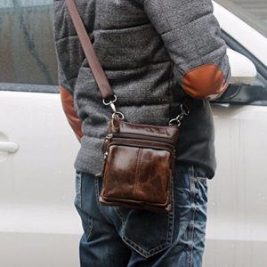 OURBAG Herrentasche Kleine Leder Schultertasche Umhängetasche Handtasche Messenger bag mit Reißverschluss Kaffee