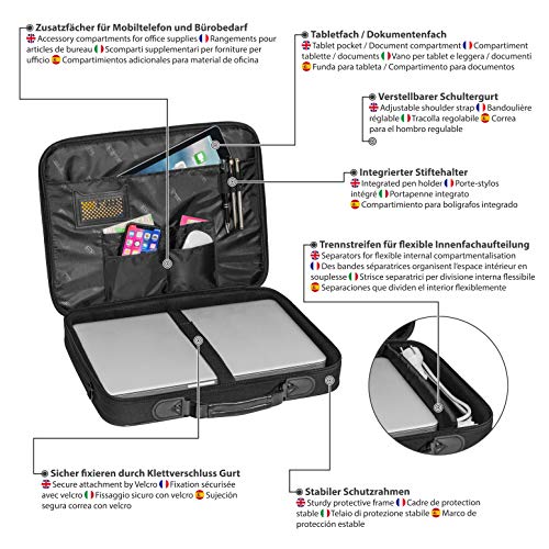 Die modische PEDEA- Notebooktasche sind für alle, die Ihr Notebook leicht und flexibel transportieren wollen. Die Tasche ist mit einem stabilem Schutzrahmen ausgestattet, damit ein optimaler Schutz vor Kratzern und Beschädigungen gewährleistet ist. Die Tasche ist wasserabweisend und bietet höchste Sicherheit bei Regen. Hinzu kommen spezielle Fächer zur Organisation Ihrer Dokumente. Durch den Schultergurt können Sie Ihren Laptop optimal tragen und umhängen. Für Notebooks bis 13,3″ (33,8cm)Mit stabilem SchutzrahmenWasserabweisendSchutzrahmen – der integrierte, stabile Rahmen schütztoptimal vor Stößen und KratzernWasserabweisend – bietet Sicherheit bei RegenSpezielle Fächer zur Organisation Ihrer DokumenteInklusive SchultergurtMaterial: 55% Nylon / 35% Baumwolle Polyester / 5% Baumwolle / 5% PolyurethanGewicht: 1,0 kg