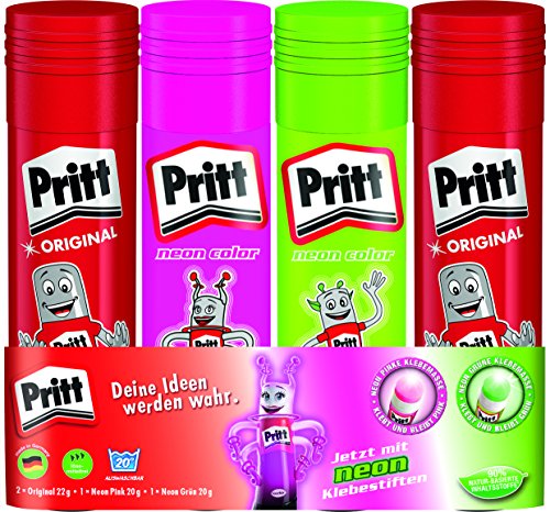 Pritt PK6MR Adhesive Pen Mix 2 Original Sticks, 22 G, Green/Pink