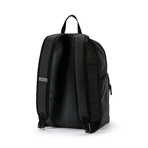 PUMA Phase Backpack: Zwei-Wege-Reißverschluss zum Hauptfach und zusätzliches Reißverschluss-Fach vorne. Aus 15D Polyester mit PU Verstärkung. Verstellbare, gepolsterte und abgerundete Schultergurte mit reflektierender Schlaufe mit PUMA Cat Logo. Gepolstertes Rückenteil und kleiner Tragegriff oben. Metall-Zipper mit Schlaufen, reflektierende Schlaufe und großes, gedrucktes PUMA No. 1 Logo vorne. Material: 100% Polyester.