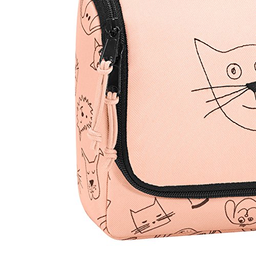 Kosmetiktasche zum Aufhängen für reiselustige Kids Auf die nächste Reise geht Ihr Kind mit eigener Kosmetiktasche. Die toiletbag im Kids Style lässt sich Aufklappen und Aufhängen, und das an allen Plätzen. Ein großes Hauptfach aus Netzmaterial und 3 Stecktaschen sorgen für Stauraum. Im Deckel der Kosmetiktasche sind 2 weitere Fächer angebracht, eine Gummischlaufe hält die Zahnbürste an Ort und Stelle. Die Kosmetiktasche besteht aus Polyester, welches nicht nur hochwertig, sondern gleichzeitig robust und widerstandsfähig ist. Sparen Sie Platz in Ihrer Kulturtasche und lassen Sie die Kleinen wie die Großen reisen, mit eigener toiletbag mit coolen cats and dogs Design. BESONDERHEITEN – zusammenklappbar – Haken zum Aufhängen – 6 Fächer – 1 Gummischlaufe – Innenpolsterung – Namensschild innen – gesticktes Tiersymbol auf der Frontseite PRODUKTDETAILS – Maße zusammengeklappt (Lx BxH): ca. 18 x 17 x 7 cm – Maße aufgehängt (LxBxH): ca. 18 x 32 x 7 cm – Volumen: 1,5 Liter – Gewicht: ca. 150 g – Farbe: rosa – Design: cats and dogsArtikelnummer: RA-IO3064 LIEFERUMFANG – 1 x Kosmetiktasche