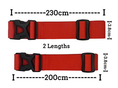 Riemot KoffergurtVorgabe:Farbe:Orange, Rot, Blau, GrünMaterialien: Robustes NylonSchnalle: ABS-SchnalleGürtel Länge: 230cm+200cmGurtbreite: 3.8cmGeeignet für: 20-32″ GepäckstückeMit der einzigartiger einem Gepäckgurte, kann man einfacher das Gepäck auf dem Gepäckförderband identifizieren,um Sie besser Reiseerlebnis.Riemot Spanngurt Vorgabe:Farbe:Grün, Blau, Rosa, GrauMaterialien: Robustes NylonSchnalle: Haken und Schnalle mit SchnelllösemechanismusBreite: 2cmLänge: 200cmBelastung: 100kgMit Schnallen aus einer leichten, stabilen eloxierten Alu- Legierung sind die Straps höher belastbar und vielseitiger als andere Schnallriemen.Robuster Spanngurt zum verpacken und komprimieren von Schlafsäcken, Koffern, Rucksäcken und sichern von Gegenständen.
