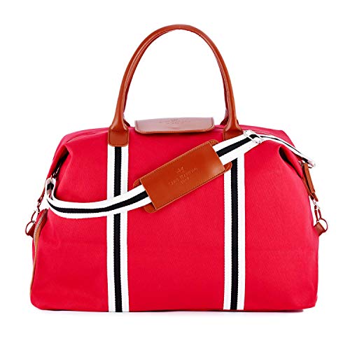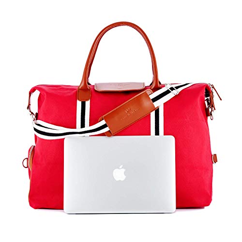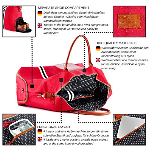 Aufgrund der funktionalen Aufteilung innerhalb und außerhalb der Reisetasche kann man neben den üblichen Reiseutensilien wie Pass, Geldbeutel oder Mobiltelefon auch problemlos sein Notebook, Ladegerät, Maus und Kopfhörer in den vorgegebenen Taschen verstauen. Das separate Schuh- / Wäschefach hilft für weitere Ordnung in der Reisetasche. Aufgrund des zusätzlichen Tragegurts lässt sich der Weekender neben dem gewöhnlichen Tragekomfort auch problemlos über die Schulter hängen. Perfekt kombinierbar mit unseren weiteren Produkten, wie z.B. dem Saint Maniero Kleidersack.