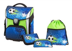 Schneiders Vienna Schulranzen Set Plus, Soccer Champ, 4 teilig, inklusive Federmappe, Sportbeutel und Schlampermappe, 40 cm, Blau