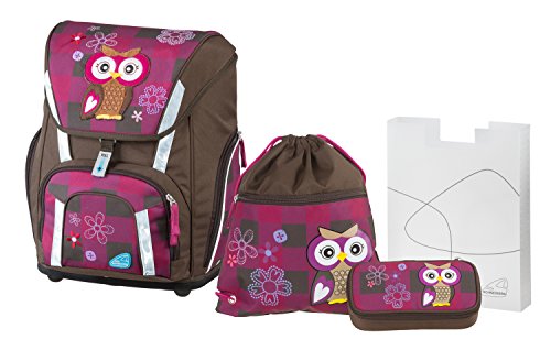 Der Allrounder unter den Schneiders Schultaschen ist der Toolbag Smart. Der Ranzen besitzt ein großes Hauptfach mit Kordelzug, einem flexiblen Innenteiler und einem Steckfach für den Stundenplan. Auf der Vorderseite und an den Außenseiten befinden sich weitere Reißverschlussfächer. Der Toolbag Smart ist mit einem höhenverstellbarem Tragesystem ausgestattet, welches in Zusammenarbeit mit Orthopäden, Physiotherapeuten und Ärzten entwickelt wurde. Ein verstellbarer Brustgurt, Lageverstellriemen und ein abnehmbarer Hüftgurt sorgen für eine optimale Lastenverteilung. Durch das Herausnehmen der Einlagen wird aus dem Schulranzen ein cooler Rucksack. Mit dem Fidlock Magnetverschluss ist das Öffnen und Schließen ein Kinderspiel. Die verstellbaren Schultergurte und die atmungsaktive Rückenpolsterung mit 3D AirMesh garantieren hohen Tragekomfort. Der Ranzen wiegt lediglich 1,2 kg und fasst bei einer Größe von ca. 30 x 41 x 23 cm ca. 24 Liter. Das Set umfasst außerdem eine Schlamperbox, eine Heftbox und einen Sportbeutel. Alle Teile sind passend zueinander in einem niedlichen Eulenmotiv designt. Das Markenzeichen des traditionsreichen Familienunternehmens Schneiders Vienna ist das fundierte Know-How. Schneiders Schultaschen und Walker Schulrucksäcke entstehen in einem intensiven produktiven Prozess, an dem mehrere kreative und fachkundige Mitarbeiter beteiligt sind. Die Berücksichtigung technischer Innovationen, der Einsatz von hochwertigen Materialien in modischen Designs und die gute Verarbeitung garantieren die besondere Schneiders Qualität.- Großes Hauptfach mit Kordelzug und flexiblem Innenteiler- Vortasche mit Thermo-Isolierung und Seitentasche mit Getränkeflaschenhalterung- Höhenverstellbares Tragesystem- atmungsaktiver- ergonomischer Rücken und verstellbare Schultergurte mit 3D AirMesh- Lageverstellriemen für optimalen Sitz im Schulterbereich- höhenverstellbarer Brustgurt und abnehmbarer Hüftgurt für optimale Gewi…