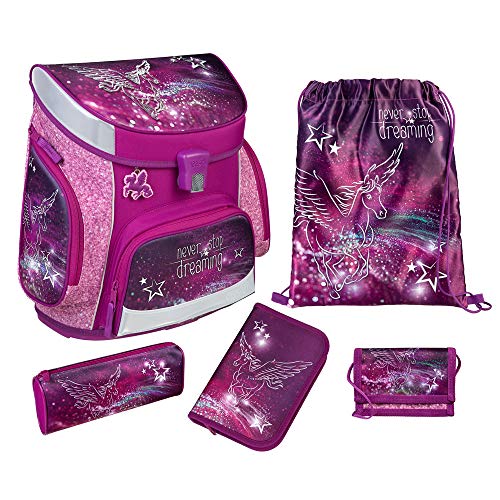 Der clevere und ergonomische Schulranzen für den heldenhaften SchulalltagEin cooles Design, clevere Funktionen und eine durchdachte Ergonomie machen den Campus Fit Schulranzen von Scooli zu einem treuen Begleiter für kleine und große Helden. Durch das leichte Gewicht und die ergonomische Passform ist er sehr bequem zu tragen. Der abnehmbare Brustgurt sorgt dafür, dass die Träger nicht rutschen und die Bücher und Hefte rückenschonend getragen werden. Ausgestattet mit einem Magnetschloss ist der Campus Fit kinderleicht zu öffnen und schließt sich ganz von alleine. Mit dem stabilen Korpus bietet er viel Platz für jedes Helden-Equipment und ist so optimal geeignet für alle Heldeneinsätze. Und bei der Auswahl an heldenhaften, märchenhaften und abenteuerlichen Motiven findet jedes Kind seinen Lieblingsranzen.Größe: ca. 36 x 37 x 23 cm (BxHxT) – Volumen: 18 Liter – Gewicht: 1000 gergonomisch geformtes Rückenpolster mit atmungsaktivem Polstermaterials-förmig, gepolsterte TraggurteLageverstellriemenBrustgurt (integriert) und Hüftgurt (separat erhältlich) abnehmbarzertifiziert mit dem Prüfsiegel 'Ergonomisches Produkt' der IGRstabiler Boden, Magnetschloss, Ablauföffnung in den Seitentaschen, Frontfach, wasserabweisendes Material, Reflektoren zur Sicherheit, Stundenplan im DeckelSet bestehend aus: Schulranzen, Turnbeutel, 18-teiliges Schüleretui, Geldbeutel bzw. Brustbeutel, SchlamperetuiWeitere tolle Artikel und das passende Zubehör zu Ihrem gewählten Produkt finden Sie in unserem Shop.
