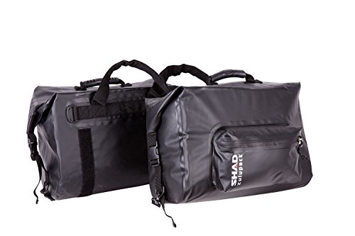 Set aus 2, 100% wasserdichten, Satteltaschen mit einer Kapazität von bis zu 18 Litern pro Beutel. Die Beutel bestehen aus 420D doppelseitigem Nylon mit PVC-Beschichtung. Beide Beutel haben einen Rollenverschluss, um Wasserdichtigkeit und harte Plastikringe sicherzustellen, um eine halbsteife Version der Beutel zu bilden. Beide Beutel verfügen auch über eine Reißverschluss-Fronttasche und einen robusten Griff mit Griff. Der Shad SW42 ist an alle Arten von Motorrädern mit den beigefügten Befestigungsreifen befestigt. Der SW42-Satz ist kompatibel mit Shads neuester Universal Silk Bag, Typ D0SS5SE. Oder fragen Sie unseren Innenraum für modellspezifische Optionen für Ihren Motor. Spezifikationen: Abmessungen: 40x35x15cm. Kapazität: 18L. Pro Beutel oder 1 Helm XXL pro Beutel. Mitgeliefertes Zubehör: Universal-Befestigungsgurte (4 Stk.) Mit Klettverschluss und elastischen, halbstarren Reifen. Hauptmaterial: 100% Nylon, Beschichtung: 100% PVC