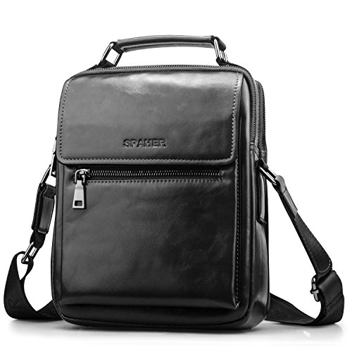 Spezifikation: -> Material: Haltbares Mikrofaserleder -> Größe: 9x11x4 Zoll oder 22 x 28 x 10 cm (L * H * W) -> Einzigartig gestaltet: perfekt für Männer, Jungen, Geschäftsmann -> Haltbarer Schultergurt: Breite ist 4cm & Länge: Einstellbar bis 150cm -> Nettogewicht: 700g -> Stil: cacual, geschäftlich, täglich tragen. -> Einzigartig gestaltete Taschenstruktur: 1 Front Zip Bag für Mobiltelefone, Servietten, etc. 1 Fronttasche mit Abdeckung der Magnetschnalle 1 Haupt-Reißverschlusstasche + Innen 1 offene Tasche + 1 Zip-Tasche für iPad, Portemonnaie, Regenschirm, Handy. 1 Main Zip Bag + Innen 3 Kartenfächer für Kreditkarten, ID-Karten, IPAD, Brieftasche, Handys. 1 Back Zip Bag für Handys, Schlüssel, etc. Paket: 1 * SPAHER Herren Leder Schultertasche