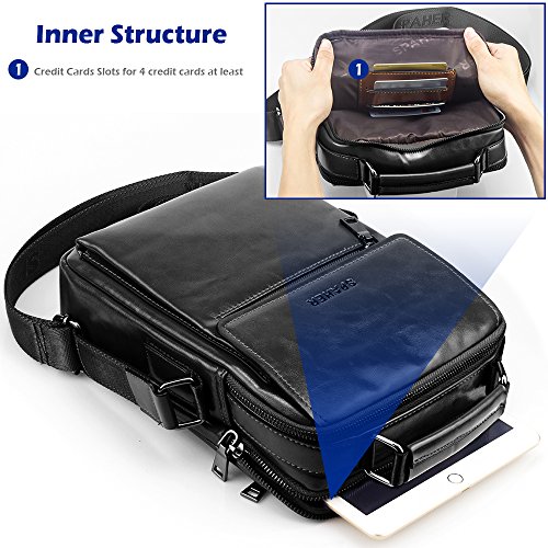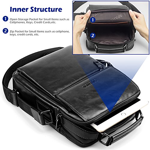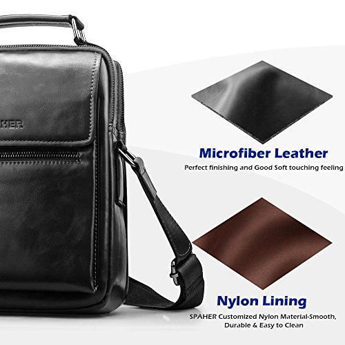 Spezifikation: -> Material: Haltbares Mikrofaserleder -> Größe: 9x11x4 Zoll oder 22 x 28 x 10 cm (L * H * W) -> Einzigartig gestaltet: perfekt für Männer, Jungen, Geschäftsmann -> Haltbarer Schultergurt: Breite ist 4cm & Länge: Einstellbar bis 150cm -> Nettogewicht: 700g -> Stil: cacual, geschäftlich, täglich tragen. -> Einzigartig gestaltete Taschenstruktur: 1 Front Zip Bag für Mobiltelefone, Servietten, etc. 1 Fronttasche mit Abdeckung der Magnetschnalle 1 Haupt-Reißverschlusstasche + Innen 1 offene Tasche + 1 Zip-Tasche für iPad, Portemonnaie, Regenschirm, Handy. 1 Main Zip Bag + Innen 3 Kartenfächer für Kreditkarten, ID-Karten, IPAD, Brieftasche, Handys. 1 Back Zip Bag für Handys, Schlüssel, etc. Paket: 1 * SPAHER Herren Leder Schultertasche