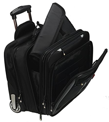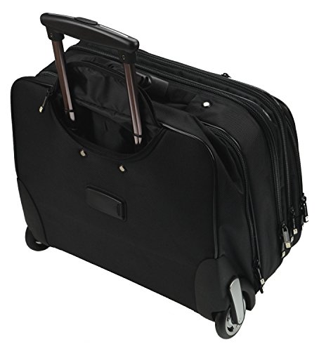 „Executive Line“ Business Trolley BRAVO 2 Vollständig versenkbares, arretierbares Trolleysystem, ergonomischer Tragegriff, Präzisionslaufrollen. Innen: Fach mit herausnehmbarer Laptophülle, Overnightfach mit zwei Packgurten und zwei Netzfächern, Fächerfach mit drei Fächern für A4 Dokumente, Organizerfach mit vier Einsteckfächern, Klettverschlusstasche und zwei Netzfächern, zwei Reißverschlussfächer für Kleinteile.