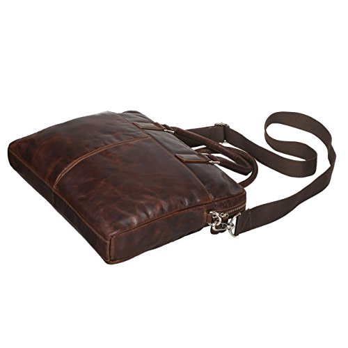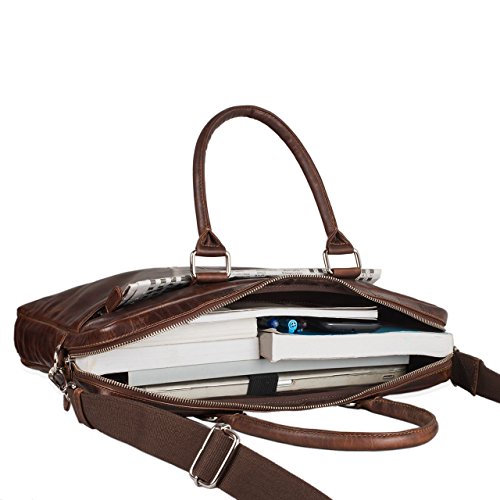 STILORD 'Emilio' Umhängetasche Leder Vintage großEleganz auf den ersten Blick – treffender könnte das Erscheinungsbild der STILORD Schultertasche 'Emilio' nicht beschrieben werden. Hochwertiges Rindsleder, klassische Farbtöne und ein stilvolles Vintage Design machen die Leder Umhängetasche zu einem Hingucker, mit dem Sie im Büro, bei Meetings und auf Geschäftsreisen stets einen repräsentativen Eindruck hinterlassen. Neben der zeitlosen Optik überzeugt die Aktentasche ebenso durch praktische Unterbringungsmöglichkeiten für DIN A4 Dokumente, 13.3 Zoll Laptops und Schreibutensilien. Ganz im Sinne der Funktionalität ist die Business Tasche mit einem verstell- und abnehmbarem Schultergurt ausgestattet, sodass Sie die Vintage Ledertasche sowohl als klassische Umhängetasche sowie als legere Handtasche nutzen können. Die Bürotasche 'Emilio' ist ein moderner und praktischer Alltagsbegleiter, der Ihren Berufsalltag durch Organisation und Stilsicherheit bereichert!STILORD Ledertasche zum Umhängen Vintage groß- Herren und Damen Umhängetasche aus echtem Rindsleder im eleganten Vintage Design mit Farbakzenten- Moderne Business Bag, Aktentasche und Dokumententasche für Beruf und Uni- Verstaumöglichkeiten im Hauptfach: DIN A4 Dokumente, Bücher und Schreibutensilien- Gepolstertes Notebookfach für 13 – 13,3 Zoll Laptops (35 x 22 cm), beispielsweise MacBook Air und MacBook Pro- Dank verstell- und abnehmbarem Schultergurt (75 – 140 cm | 4 cm breit) als Umhängetasche und Handtasche tragbar- Aufteilung: Hauptfach mit 1 x Reißverschlussfach, 1 x Laptopfach, Organisationsleiste mit 1 x Handyfach (14 x 8 cm), 3 x Stiftehalter, 5 x EC-Karten Fächer | 1 x Reißverschlussfach vorne | 1 x Reißverschlussfach hinten- Abmessungen: 38 x 31 x 5 cm | Modell: Emilio | Gewicht: 810 Gramm | Material: Rindsleder | Hersteller: STILORD | Kompatibilität: 13 – 13,3 Zoll MacBooks und Notebooks