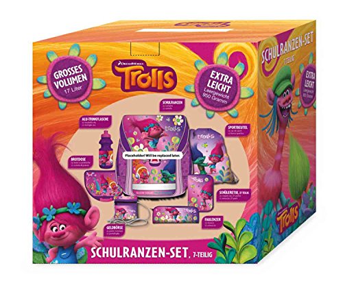 Stylex Schulranzen DreamWorks Trolls 7-teilig mit einem geräumigen Hauptfach mit Unterteilung, Innentasche mit Reißverschluss und Stundenplan, sowie Vordertasche mit Unterteilung. Durch den magnetischen Klickverschluss lässt sich der Ranzen einfach verschließen. Die reflektierenden Sicherheitselemente sorgen für die Sicherheit Ihres Kindes. Lieferung: inkl. Trolls Schüleretui 27-teilig, Sportbeutel mit Kordelzugverschluss, Brotdose, Geldbörse mit Reißverschluss, Trinkflasche und Faulenzeretui Leergewicht: ca. 970g Material: Polyester gepolsterte, verstellbare Schultergurte reflektierende Sicherheitselemente