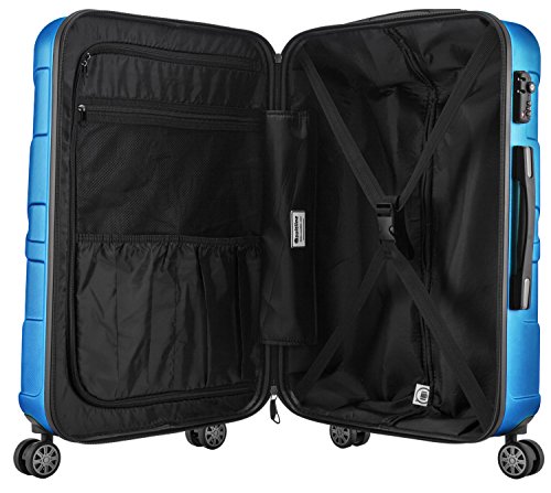 Suitline-Handgepäckkoffer sind bunt: 15 verschiedenen Farben für jeden Geschmack und Anlass leicht: der leere Koffer wiegt nur 2,4 kg groß: 33 Liter Volumen für Unterlagen, Laptop, Kleidung und Schuhe universell: passend für jede Airline ergonomisch: Teleskopstange auf drei Stufen einstellbar: 92, 97,5 oder 103 cm langlebig: Teleskopstange aus verstärktem Aluminium bruchsicher: ABS-Hartschalen sind extrem robust, absolut stabil und stoßunempfindlich wendig: 4 gummierte Zwillings-Leichtlaufrollen, 360° drehbar standfest: 4 Kunststoff-Füße an der Längsseite praktisch: Tragegriffe an der Ober- und Längsseite sicher: TSA-Zahlenschloss mit verstellbarem Code übersichtlich: flexibler Zwischenboden mit drei separaten Fächern unterteilt den Kofferinnenraum ordentlich: Kreuzgurt sichert den Inhalt nachhaltig: Tragegriffe, Teleskopgriff, Rollen und Standfüße sind geschraubt und können jederzeit nachbestellt werdenMaterialHartschale aus 100% ABSMaß- und GewichtsangabenGröße S (H x B x T)Außenmaße: 55 x 35 x 20cmInnennmaße: 50 x 35 x 20cmGewicht: 2,4 kgVolumen: ca. 33 LiterHeb ab mit dem superleichten, futuristischen Board-Trolley von SuitlineFuturistisch und exklusiv – das avantgardistische Kabinengepäck von Suitline im Hightech-Look ist ein absoluter Eyecatcher auf jeder Reise. Die superleisen gummierten Doppelrollen und die hochwertige Teleskopstange aus verstärktem Aluminium machen ihn einfach unverwechselbar.
