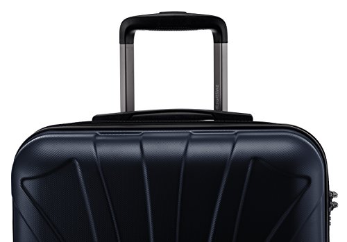 Suitline-Handgepäckkoffer sind bunt: 15 verschiedenen Farben für jeden Geschmack und Anlass leicht: der leere Koffer wiegt nur 2,4 kg groß: 33 Liter Volumen für Unterlagen, Laptop, Kleidung und Schuhe universell: passend für jede Airline ergonomisch: Teleskopstange auf drei Stufen einstellbar: 92, 97,5 oder 103 cm langlebig: Teleskopstange aus verstärktem Aluminium bruchsicher: ABS-Hartschalen sind extrem robust, absolut stabil und stoßunempfindlich wendig: 4 gummierte Zwillings-Leichtlaufrollen, 360° drehbar standfest: 4 Kunststoff-Füße an der Längsseite praktisch: Tragegriffe an der Ober- und Längsseite sicher: TSA-Zahlenschloss mit verstellbarem Code übersichtlich: flexibler Zwischenboden mit drei separaten Fächern unterteilt den Kofferinnenraum ordentlich: Kreuzgurt sichert den Inhalt nachhaltig: Tragegriffe, Teleskopgriff, Rollen und Standfüße sind geschraubt und können jederzeit nachbestellt werdenMaterialHartschale aus 100% ABSMaß- und GewichtsangabenGröße S (H x B x T)Außenmaße: 55 x 35 x 20cmInnennmaße: 50 x 35 x 20cmGewicht: 2,4 kgVolumen: ca. 33 LiterHeb ab mit dem superleichten, futuristischen Board-Trolley von SuitlineFuturistisch und exklusiv – das avantgardistische Kabinengepäck von Suitline im Hightech-Look ist ein absoluter Eyecatcher auf jeder Reise. Die superleisen gummierten Doppelrollen und die hochwertige Teleskopstange aus verstärktem Aluminium machen ihn einfach unverwechselbar.