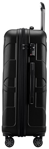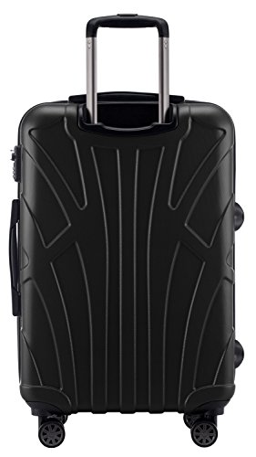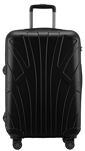Suitline-Hartschalenkoffer sind leicht: der leere Koffer wiegt nur 3.2 kg sehr groß: 53 Liter Volumen für Kleidung, Schuhe, Schlafsack und Kamera ergonomisch: Teleskopstange auf drei Stufen einstellbar: 92, 97,5 oder 103 cm langlebig: Teleskopstange aus verstärktem Aluminium bruchsicher: ABS-Hartschalen sind extrem robust, absolut stabil und stoßunempfindlich wendig: 4 gummierte Zwillings-Leichtlaufrollen, 360° drehbar standfest: 4 Kunststoff-Füße an der Längsseite praktisch: Tragegriffe an der Ober- und Längsseite sicher: TSA-Zahlenschloss mit verstellbarem Code übersichtlich: flexibler Zwischenboden mit drei separaten Fächern unterteilt den Kofferinnenraum ordentlich: Kreuzgurt sichert den Inhalt nachhaltig: Tragegriffe, Teleskopgriff, Rollen und Standfüße sind geschraubt und können jederzeit nachbestellt werdenMaterialHartschale aus 100% ABSMaß- und GewichtsangabenGröße M (H x B x T)Außenmaße: 66 x 43 x 24 cmInnennmaße: 61 x 43 x 24 cmGewicht: 3,2 kgVolumen: ca. 53 LiterHeb ab mit dem superleichten, futuristischen Koffer von SuitlineDas avantgardistische Gepäck von Suitline im Hightech-Look ist ein absoluter Eyecatcher auf jeder Reise. Die superleisen gummierten Doppelrollen und die hochwertige Teleskopstange aus verstärktem Aluminium machen ihn einfach unverwechselbar.