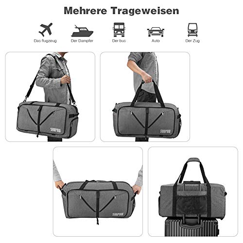 Warum brauchen Sie eine faltbare Reisetasche? Ein faltbare Reisetasche ist nützlicher als Ihre Vorstellung. Diese Reisetasche ändert Ihre Verpackungsart. a. 75% Gewicht weniger als Ihr leerer Koffer. b. Falten Sie bitte die Reisetasche, wenn Sie die Tasche nicht brauchen, und ziehen Sie die Tasche heraus, wenn Sie die Tasche brauchen. c. Eine gut ausgestattete Reisetasche kann Ihr Gepäck gut organisiert halten Warum wählen Sie SUNPOW Sporttasche Reisetasche? 1) Haltbar: 75% Gewicht weniger als Ihr Koffer, aber dicker als normal faltbare Reisetasche. (Reißfest und maschinenwaschbar) 2) Bequemes Tragen: Anders als drei normale Tragegurte. Dieses Handgepäck hat ein zusätzliches Klettfach, deshalb können Sie die Tasche an Ihrem Koffer befestigen. 3) Erfüllen Ihre Notwendigkeiten: Unterschiedliche Farbe sind verfügbar für Männer, Frauen, Schuljungen oder Mädchen. Mehrfachentwurf kann Ihre Bedürfnisse für unterschiedliche Verpackung erfüllen. 4) Große Kapazität: klein Maß der Faltung, aber mit großer Kapazität (65L) und diese Reisetasche kann genug Gegenstände halten. Perfekt für Shopping, Reisen oder Lagerung usw. 5) 100% VERTRAUEN: Wir garantieren 1 Jahre kostenlosen Schutz ab dem Datum des Kaufs. JETZT BESTELLEN SIE OHNE RISIKO! Produktinformation Material: Hochwertiges zweifarbiges kationisches Material Verschlussart: Reißverschluss Größe der Aufrollung(LxBxH): 26,30 „x 13,70″ x 12,2 “ Größe der Faltung(LxBxH): 11,61 „x 10,83″ x 3,35 “ Fassungsvermögen: 65l Wasserfest: Ja