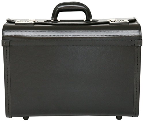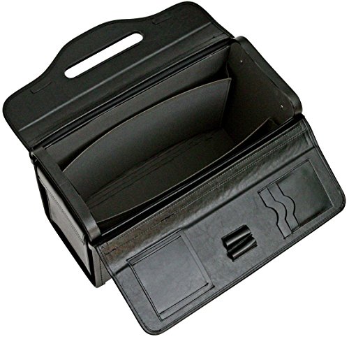 Pilotenkoffer aus LederfaserstoffGroßes geräumiges Fach mit abgetrennten Bereichen für Unterlagen auf jeder Seite.Außenfächer mit Klettverschluss auf jeder Seite, Seiten für mehr Strapazierfähigkeit und Langlebigkeit genietetGunmetal-Zahlenschlösser mit Einstellmöglichkeit für individuellen Code, schützende FüßeMaße: 46 x 21 x 35 cm