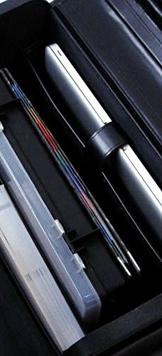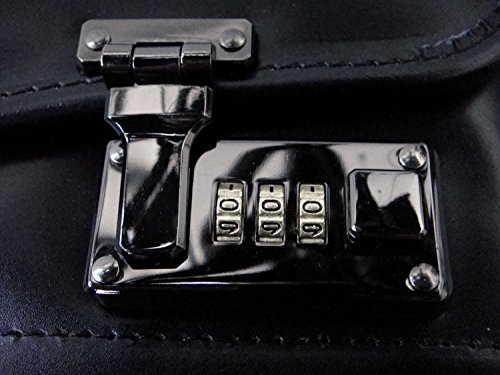 Großer Pilotenkoffer aus schwarzem Lederfaserstoff (kein PU-/PVC-Kunstleder) – wahrscheinlich der günstigste Pilotenkoffer auf dem Markt – mit faltbarem Laptopfach mit bis zu 19″ an der Innenwand. An der anderen Innenwand befindet sich ein Steckfach für Dokumente; auf beiden Seiten befinden sich Taschen mit Klettverschluss; außen befindet sich ein verschließbares Vorderfach mit einer Größe von 41 x 26 x 1,5 cm; auf der Innenseite des Überschlags befinden sich ein kleines Reißverschlussfach sowie Stiftehalter. Teleskop-Griff und Rollen, zwei Zahlenschlösser aus Metall auf dem Hauptfach, Maße: 48,5 x 27 x 38 cm