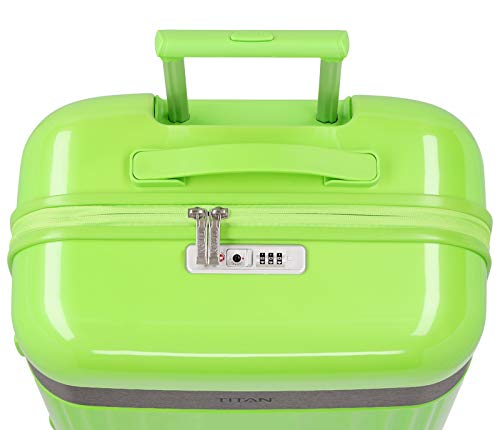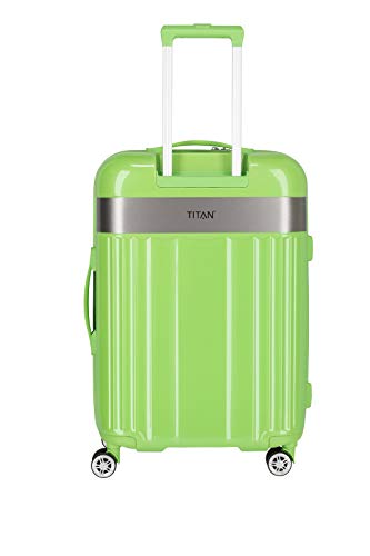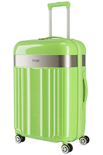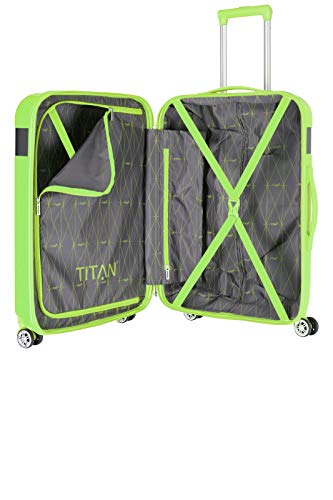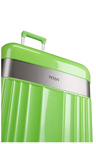 Der original „Germany’s next Topmodel“ SPOTLIGHT FLASH von TITAN vereint Fashion und Funktion. Außen: Hartschale vorn das Logo zwei Tragehenkel das Hauptfach wird mit einem Zwei-Wege-Reißverschluss verschlossen mit arretierbarer Teleskopstange vier 360° drehbare Leichtlaufrollen Innen: ein Reißverschlussfach je ein Kreuzspanngurt im Boden und im Deckelfach Besonderheiten: Blende in gebürsteter Alumium Optik die PC-folierte ABS Hartschale macht den Koffer extrem robust und gleichzeitig angenehem leicht