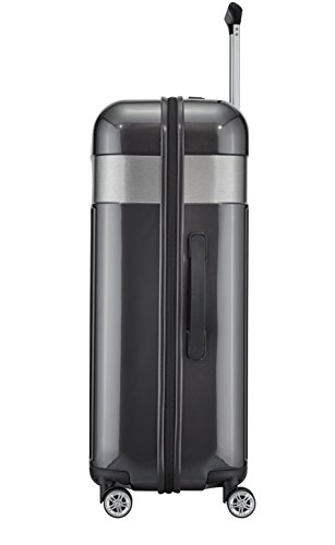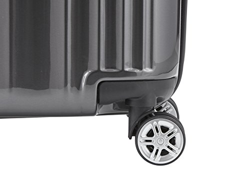 der SPOTLIGHT FLASH vereint Fashion und Funktion Außen: Hartschale vorn das Logo zwei Tragehenkel das Hauptfach wird mit einem Zwei-Wege-Reißverschluss verschlossen mit arretierbarer Teleskopstange vier 360° drehbare Leichtlaufrollen Innen: ein Reißverschlussfach je ein Kreuzspanngurt im Boden und im Deckelfach Besonderheiten: Blende in gebürsteter Alumium Optik die PC-folierte ABS Hartschale macht den Koffer extrem robust und gleichzeitig angenehem leicht