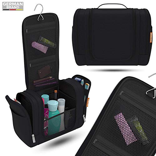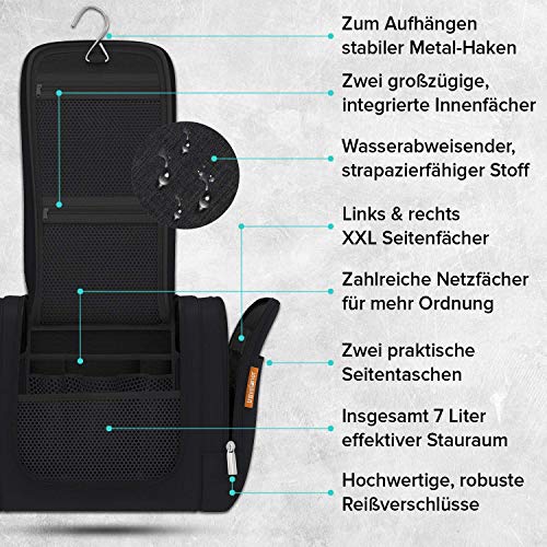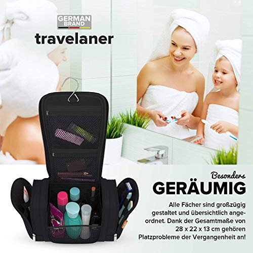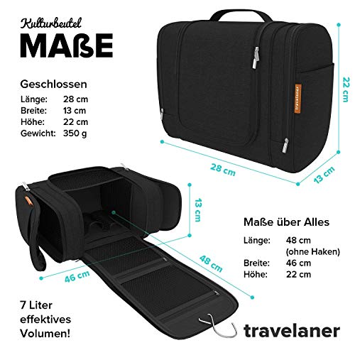 „Travelaner Kulturbeutel – Weil du zu smart bist für eine herkömmliche Waschtasche!“ Warum Travelaner? 1. UNISEX – Perfekt geeignet für Frauen, Männer und Kinder2. HOCHWERTIGSTE MATERIALIEN – Für maximale Langlebigkeit3. JEDE MENGE PLATZ – Insgesamt 7 Liter! Stauraum4. ALLES IM BLICK – Zahlreiche übersichtlich und logisch angeordnete Fächer und Innentaschen5. ZUM AUFHÄNGEN – Stabiler & robust verarbeiteter Metal-Haken6. ORGANIC DESIGN – Hochwertiger, strapazierfähiger Stoff im modernen „Frozen-Style“7. WASSERABWEISEND – Schützt dein Reise-Equipment vor Wasser8. FANS, FANS, FANS – Mehr als 5.000 begeisterte Travelaner-Fans können nicht irren! Spezifikationen Maße (geschlossen): 28 x 22 x 13 cm (LxHxB) Maße (offen): 48 x 22 x 46 cm (LxHxB) Volumen: ca. 7 Liter Gewicht: 350 g Material: wasserabweisend Gratis Ebook: 55 Travel Hacks, um Zeit, Geld & Nerven zu sparen 100% Zufriedenheits-Garantie Wir von Travelaner sind ein junges Unternehmen, das sich speziell auf hohe Qualität, langlebige Produkte und einzigartigen Kundenservice spezialisiert hat.Unser Versprechen: Bei jedem Problem, jeder Frage und jedem Anliegen melden wir uns innerhalb von 24h bei dir und werden eine individuelle Lösung für dich finden. Nimm deinen Travelaner Kulturbeutel mit auf dein nächstes Abenteuer und hol ihn dir jetzt mit einem Klick auf „In den Einkaufswagen“ nach Hause!