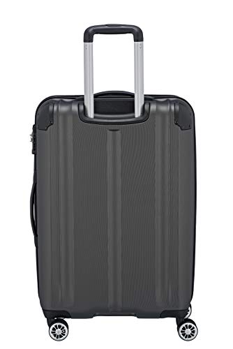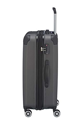 Die Travelite Koffer der City Serie sind aus ABS gefertigt. Sein glänzender Kantenschutz hebt ihn von der Menge ab und lässt ihn modern und stylisch erscheinen. Bei der Größe M und L ist der Koffer zusätzlich mit einer Dehnfalte ausgestattet, dass es Ihnen ermöglicht den Koffer bei Bedarf vom Innenraum her zu vergrößern.4 leichtgängige Rollenlängenverstellbares GestängeTSA-SchlossSpannriemendiverse Reißverschlussfächer
