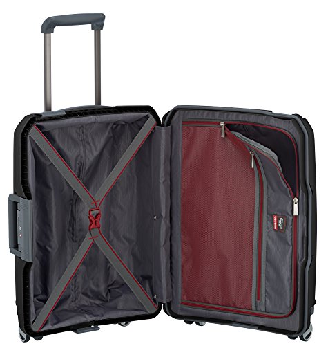 Marke/Hersteller: Travelite Serie: Makro Abmessungen: 39 x 55 x 20 cm (B x H x T) ca. Gewicht: 3,1 kg ca. Volumen: 39 l Material:Polypropylen 4 Rollen Verschlussart: Schloss Herstellergarantie: 2 Jahre Größenindex: S Hartgepäck Trennplatte Packriemen innen zu Packen TSA Schloss Zahlenschloss Innenfutter Kreuzspanngurte Reißverschlussfach Tasche(n)innen Griff mit Arretierknopf