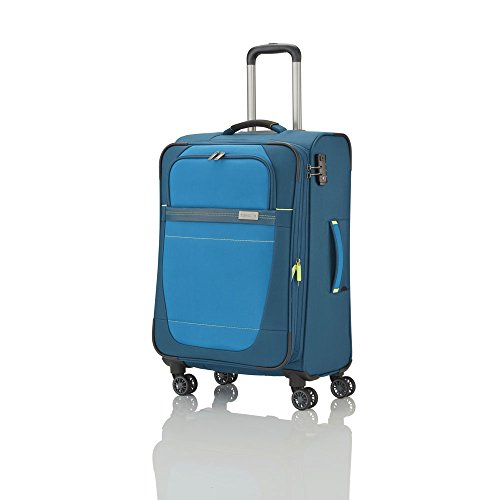travelite Meteor 4-Rad Trolley 66cm Meteor – die neue Weichgepäckserie der Firma travelite. Modernes Design mit abgesetzten Kontrastakzenten macht die Serie zu absoluten Eyecatcher für Ihre nächste Urlaubsreise. Im Inneren überzeugt die Serie mit Ihrer praktisch funktionellen Innenaufteilung. Die Serie Meteor ist in den Farben schwarz, beere und petrol erhältlich. Eine Kofferserie die keine Wünsche offen lässt. Außenausstattung: -arretierbares Teleskopgestänge, 2-armig -handfreundlicher gepolsterter Tragegriff -handfreundlicher Seitengriff -Reißverschluss-Fach auf der Rückseite -ausziehbares Adressfeld -TSA-Zahlenschloss -Kantenschutz -erweitbar für mehr Packvolumen -Reißverschluss-Vortasche -4 leichtlaufende Doppelrollen -Bodengriff Innenausstattung: -geräumiges Reißverschluss-Hauptfach -Packgurte mit Steckverschluss im Hauptfach -Reißverschluss-Steckfach -Reißverschluss-Trennwand -Kreuzspanngurte mit Steckverschluss hinter der Trennwand