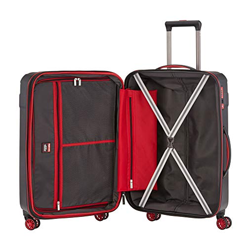 Der elegante Klassiker Mit dem neuen VECTOR Hartschalentrolley präsentiert der Reisegepäckspezialist travelite sein beliebten Klassiker im neuen Gewand. Die Schale des VECTOR besteht aus kratzfestem ABS-Kunststoff und verfügt über eine hohe Stabilität und Schlagfestigkeit. Im VECTOR befindet sich im Inneren alles, wo man es vermutet. Die elastischen Packgurte ermöglichen einen stets optimalen Halt der verstauten Kleidungsstücke und innerhalb der separaten Tasche mit Reißverschluss lassen sich kleinste Utensilien sicher unterbringen. Die großen Doppelrollen sorgen für außergewöhnliche Laufeigenschaften. Dank der kugelgelagerten Räder ist ein flüsterleiser Betrieb auf jedem Untergrund garantiert. Das TSA-Sicherheitsschloss wurde in Zusammenarbeit mit travelite entwickelt und verspricht die gewohnte Sicherheit, die man auch erwartet. Mithilfe der TSA-Funktion sind Reisen in die USA vollkommen unproblematisch, da die vorliegenden gesetzlichen Bestimmungen eingehalten werden. Der VECTOR besticht wie gewohnt durch sein futuristisches Design und unterstreicht damit zusätzlich den Aspekt der Stabilität und Sicherheit. Die Trolleys sind in den Farben Anthrazit, Koralle, Braun und Petrol erhältlich. Trolley Features Stabil Die Schale des VECTOR besteht aus kratzfestem ABS-Kunststoff und verfügt über eine hohe Stabilität und Schlagfestigkeit. Klassisch Im VECTOR befindet sich im Inneren alles, wo man es vermutet. Die elastischen Packgurte ermöglichen einen stets optimalen Halt der verstauten Kleidungsstücke und innerhalb der separaten Tasche mit Reißverschluss lassen sich kleinste Utensilien sicher unterbringen. Flüsterleise Die großen Doppelrollen sorgen für außergewöhnliche Laufeigenschaften. Dank der kugelgelagerten Räder ist ein flüsterleiser Betrieb auf jedem Untergrund garantiert. Sicher Das TSA-Sicherheitsschloss wurde in Zusammenarbeit mit