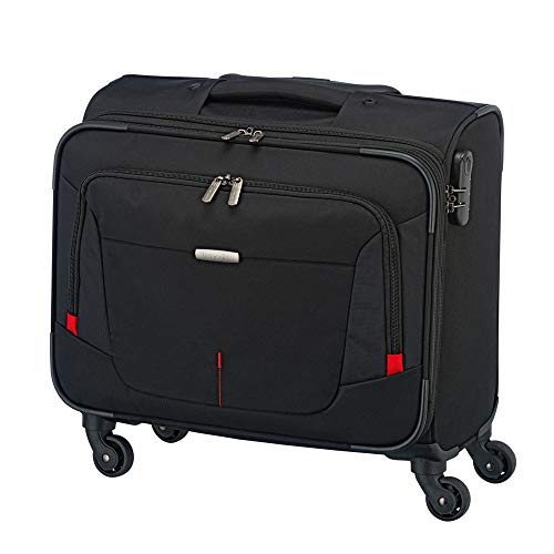Funktionaler 4-Rollen-Businesstrolley von Travelite aus strapazierfähigem Polyester in geradlinigem, modernem Design. Die geräumige Tasche verfügt über ein großes Hauptfach, ein Laptop- und ein Tabletfach, ein Hemdenfach mit Spanngurt sowie weitere Nebenfächer, Wertsachen, Handy und mehr.Marke: TraveliteSerie: @WORKAußenmaße (LxBxH): 45cm x 23cm x 43cmGepäckart: WeichgepäckLaptoptaschenart: Koffer & TrolleysLaptopfach: jaMaße des Laptopfachs (LxBxH): 38cm x 23cm x 4cmGewicht in kg: 2.80kgRichtgröße: Cabin (bis 56 cm)Material: PolyesterExtras: Tragegriff, Stiftelaschen, Packriemen innenAusstattung: Reißverschlussfach, Handyfach, Tasche(n) innen, Tasche(n) außen, auf Trolley steckbarKreditkartenfächer: 4Rollensystem: 4 RollenSchlossart: TSA-SchlossVerschlussart: ReißverschlussFach für Tablet-PC: jaVolumen in L ca.: 31-40