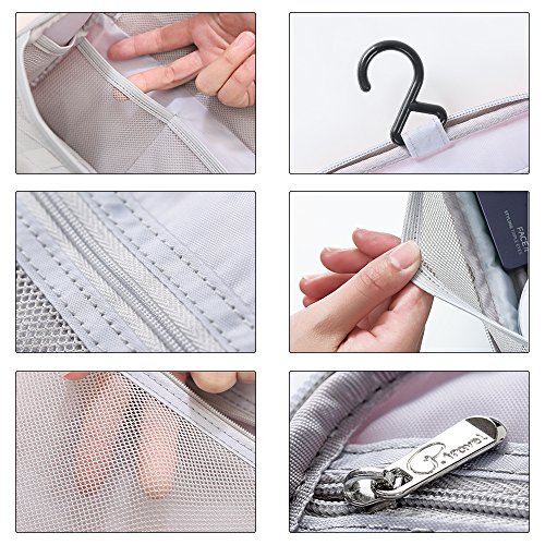 Viele Frauen kennen es: Die nächste Reise steht bevor und man fängt an selbst bei eine Wochenendreise einen Umzug der Klamotten und vor allem der Pflegeprodukten zu veranstalten. Man möchte einfach nicht weit weg von zu Hause all die Dinge vermissen, die man zu Hause jeden Tag benutzt oder benutzen muss. Jetzt kann Tuscall dich genau retten! Tuscall Reise-Kulturbeutel-Taschen – eine Ultra-light ultra-praktische wasserdichte Kosmetiktasche für Ihren Hausgebrauch, Spielraum oder andere draußen Tätigkeiten Wasserdichte und haltbare Badezimmer-AufbewahrungsbeutelDiese hängende Toilettenartikel aus hochwertigem Stoff und Futter, geben Ihnen ein angenehmes Touch-Gefühl, und in der Zwischenzeit ist es langlebig, leicht, wasserdicht und waschbar, nie Sorgen um Flüssigkeit verschüttet, können Sie sehr einfach, um es ohne Problem zu reinigenMultifunktional und alle organisiertAußer als Toilettenbeutel verwendet, auch eine perfekte Aufbewahrungslösung für Ihre Tech-Artikel umstürzen. Nicht mehr verworrene Schnüre, verdrehte USB-Kabel und unorganisierte Gadget-Ladegeräte; oder kann für Baby-Tasche verwendet werden, um Baby-Wischtücher, Baby-Flaschen oder andere Baby-Bedürfnisse zu tragen.Top TragegriffEin praktischer, langlebiger Haken ermöglicht das sichere Aufhängen des Toilettenartikels aus einer Dusche oder einem Handtuchhalter, so dass es leicht zu sehen und auf gespeicherte Inhalte zugreifen kann. Langlebige Tragegriff außen machen es bequem zu tragen oder aufgehängt.Bequeme FächerExtra Kissen, schützen Sie Ihre gehört vor Schockieren. Mehrere Interieur Mesh Taschen Design halten atmungsaktiv und fügen Sie zusätzliche Lagerung für Ihre Make-ups wie flüssige Stiftung und Feuchtigkeitscreme. Double Layer Stauraum organisieren maximale Reisegröße Toilettenartikel, Kosmetik und andere Reise-Accessoires.