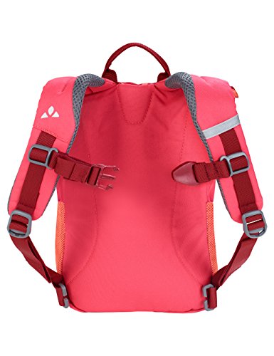 Vaude Kids Kinderrucksack Minnie 5 Der kleine Kinderrucksack Minnie 5 von Vaude ist bestens geeignet für den Alltag und Kindergarten. Leicht zu greifende Reißverschluss-Zipper machen das Öffnen und Schließen für die Kleinen einfach. Reflektierende Elemente schützen in der Dämmerung. Der verstellbare Brustgurt wächst mit dem Kind mit und hält den Rucksack auch beim Toben und Laufen sicher auf dem Rücken. Außenausstattung: – Tragegriff / Aufhängeschlaufe – weich gepolsterte, anatomisch angepasste Schultergurte mit – Brustgurt, höhen- und weitenverstellbar – Befestigung eines Gurtband-Hüftgurt möglich (nicht im Lieferumfang enthalten) – gepolsterter Rücken – 2 Netz-Außentaschen – leicht zu greifende Reißverschluss-Zipper – Reißverschluss-Vortasche – reflektierende Elemente – Schlaufe zum Befestigen von kleinen Fundstücken Innenausstattung: – übersichtliches Hauptfach – Namensschild innen