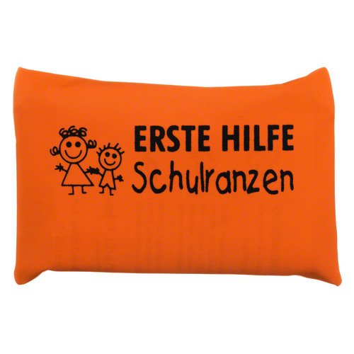 enthält kindgerechtes VerbandmaterialErste-Hilfe-Set Schulranzen.Das sollten alle Schulkinder immer im Schulranzen haben, dann ist dieErste Hilfe stets dabei. Kleinere Verletzungen auf dem Schulweg, beimSpielen und Toben können schnell selbständig versorgt werden.Das Erste-Hilfe-Set für den Schulranzen enthält kindgerechtesVerbandmaterial in anatomiegerecht angepassten Abmessungen wieKinder-Verbandpäckchen, elastische Kinder-Binde, Kinder-Kompresse,Kinder-Pflaster, Heftpflaster. Reißverschlußtasche 135 x 95 mm, beschichtetes Nylongewebe, Farbeorange. Robust, leicht, weich, geschmeidig, wenig Platzbedarf. Beschriftung und Motiv im Siebdruck.