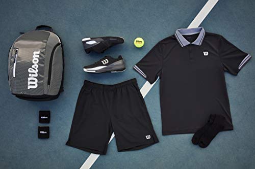 Dieser Tennisrucksack Super Tour Backpack von Wilson ist mit seinem cleanen Design und den praktischen Eigenschaften eine unverzichtbare Tasche auf dem Tennisplatz. – großes Hauptfach zum Verstauen von Equipment und Kleidung – für 2 Schläger geeignet – außen liegendes Seitenfach für Wertsachen – Wilson-Schriftzug auf der Seite der Tasche – thermoisolierendes Fach für Getränke und Accessoires – separates Schufach – Maße (H x T x B) ca. 49 x 25 x 33 cm
