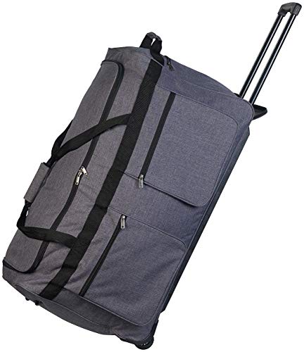 Bequemes Ziehen oder Tragen: Reisen Sie auch mit großem Gepäck komfortabel Transportieren Sie großes Gepäck bequem: Jetzt sind Sie für Ihre Reise oder zum Sport perfekt gerüstet. Mit 160 Litern Fassungsvermögen haben Sie auch auf längeren Reisen alles dabei, was Sie brauchen. Und leicht ist sie auch noch. So schleppen Sie kein unnötiges Gewicht! Rollen Sie Ihre Tasche einfach – statt schwer zu schleppen: Ziehen Sie den Teleskop-Griff aus und ziehen Sie Ihre Reisetasche hinter sich her. So transportieren Sie schweres Gepäck ganz leicht. Auch als Tragetasche nutzbar: An den Gurten mit dem praktischen Klettverschluss-Pad tragen Sie Ihre Reisetasche einfach in der Hand. Damit überwinden Sie schnell Treppen, steigen bequem in öffentliche Verkehrsmittel ein oder verladen Ihr Gepäck ins Auto. Wichtiges ist immer griffbereit: 3 Außentaschen mit Reißverschluss bieten Platz für alles, was Sie unterwegs schnell zur Hand haben müssen. Oder für kleine Teile. So haben Sie immer Zugriff auf Proviant, Tickets, Reisedokumente, Schreibzeug, Handy-Ladekabel u.v.m. Platzsparend verstaubar: Falten Sie Ihre Tasche nach der Reise einfach zusammen. So bringen Sie sie auf kleinstem Raum unter – auf dem Schrank, unter dem Bett oder in der Abstellkammer.Der Statt-Preis von EUR 79,90 entspricht dem ehem. empf. VK des Lieferanten.