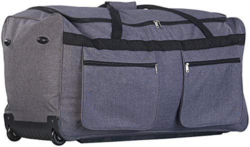 Bequemes Ziehen oder Tragen: Reisen Sie auch mit großem Gepäck komfortabel Transportieren Sie großes Gepäck bequem: Jetzt sind Sie für Ihre Reise oder zum Sport perfekt gerüstet. Mit 160 Litern Fassungsvermögen haben Sie auch auf längeren Reisen alles dabei, was Sie brauchen. Und leicht ist sie auch noch. So schleppen Sie kein unnötiges Gewicht! Rollen Sie Ihre Tasche einfach – statt schwer zu schleppen: Ziehen Sie den Teleskop-Griff aus und ziehen Sie Ihre Reisetasche hinter sich her. So transportieren Sie schweres Gepäck ganz leicht. Auch als Tragetasche nutzbar: An den Gurten mit dem praktischen Klettverschluss-Pad tragen Sie Ihre Reisetasche einfach in der Hand. Damit überwinden Sie schnell Treppen, steigen bequem in öffentliche Verkehrsmittel ein oder verladen Ihr Gepäck ins Auto. Wichtiges ist immer griffbereit: 3 Außentaschen mit Reißverschluss bieten Platz für alles, was Sie unterwegs schnell zur Hand haben müssen. Oder für kleine Teile. So haben Sie immer Zugriff auf Proviant, Tickets, Reisedokumente, Schreibzeug, Handy-Ladekabel u.v.m. Platzsparend verstaubar: Falten Sie Ihre Tasche nach der Reise einfach zusammen. So bringen Sie sie auf kleinstem Raum unter – auf dem Schrank, unter dem Bett oder in der Abstellkammer.Der Statt-Preis von EUR 79,90 entspricht dem ehem. empf. VK des Lieferanten.