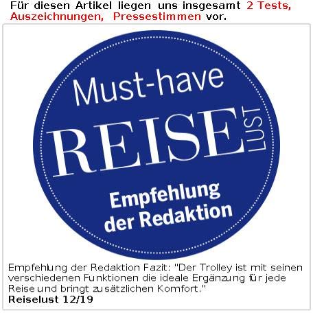 Schützt mit harter Schale Ihr Reisegepäck & bietet eine USB-LademöglichkeitAUSZEICHNUNGEN / BEWERTUNGEN / PRESSESTIMMEN:Reiselust (12/19): Empfehlung der Redaktion Fazit: „Der Trolley ist mit seinen verschiedenen Funktionen die ideale Ergänzung für jede Reise und bringt zusätzlichen Komfort.“, Framania Magazin (11/19): Empfehlung der Redaktion Fazit: „Der gräumige Koffer bietet viel Platz für das Gepäck und und hat zudem die Ideale Kabinengepäckgröße. Die intergrierten USBLadeports für die Powerbank sind einfach genial.“. Ihr idealer Begleiter auf jeder Reise: Ihr neuer, robuster Hartschalen-Trolley schützt seinen Inhalt in nahezu jeder Situation optimal. So kommt Ihr Gepäck sicher von A nach B! Ideale Kabinengepäck-Größe für fast alle Airlines: Dank seiner kompakten Maße nehmen Sie ihn einfach mit in den Flieger. So haben Sie wichtige Inhalte auch schnell griffbereit. Geräumig mit einem Extra-Platz für Laptop samt Zubehör: Der kompakte Koffer bietet Raum für bis zu 30 Liter Inhalt. Im separaten Notebook-Fach in der Front finden zudem ein kompakter Laptop, Notizblock, Stifte u.v.m. Platz. Ein zusätzliches, offenes Fach für Lese-Stoff: Legen Sie Zeitschriften, eine Zeitung oder ein Buch ein. Schon haben Sie alles zu Ihrer Unterhaltung direkt griffbereit.Zubehör- & Mitbestell-Empfehlungen:Koffer Organizer: B074KD6FFB, Kofferhülle: B07TT5MNTD, Powerbank: B07TVMX2R6, B079RHL5CQDer Statt-Preis von EUR 299,90 entspricht dem ehem. empf. VK des Lieferanten.