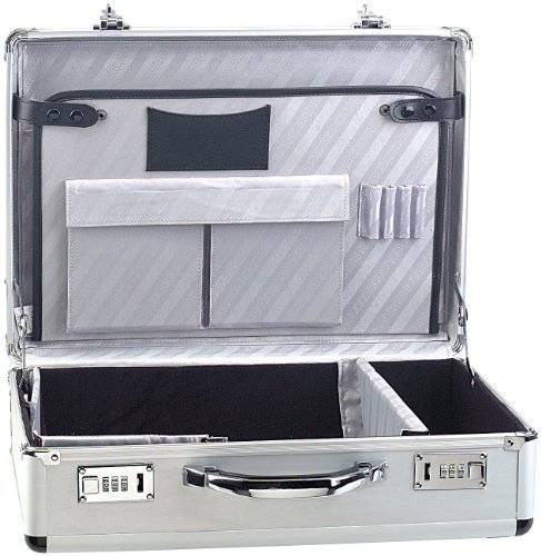 Praktisch und preiswert: Perfekter Schutz mit viel StauraumIn diesem hochedlen Design-Koffer aus schlagfestem Aluminium setzen Sie Ihren tragbaren Computer bei jeder Gelegenheit perfekt in Szene.Die elegante Samt- und Stoff-Auskleidung sowie die praktische Klettverschluss-Fixierung schützen Ihr wertvolles Gerät wirksam vor Erschütterungen.In den per Klettverschluss stufenlos verstellbaren Seitentaschen bringen Sie ganz locker Zubehör wie Netzteil, Akku, Kabel und vieles mehr unter.Ein geräumiges 2-fach verstellbares Dokumentenfach, weitere Fächer für CDs und Visitenkarten sowie Schlaufen für Ihr Schreibgerät finden Sie im Koffer-Deckel.Damit sich der geöffnete Deckel des Design-Koffers nicht ungewollt schließt, lässt sich dieser ganz leicht arretieren.Die Zahlen-Sicherheitsschlösser schützen den Inhalt Ihres Koffers vor Langfingern und neugierigen Blicken.Der Statt-Preis von EUR 59,90 entspricht dem ehem. empf. VK des Lieferanten.